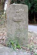 馬頭観音を更に進むと林を抜け広い舗装道路にでる。右は平成通りへと続く。ここを左折ししばらくいくと、袖ヶ浦市へ向う分岐路脇に「南阿弥陀仏」を念仏が刻まれた道標が建っている。